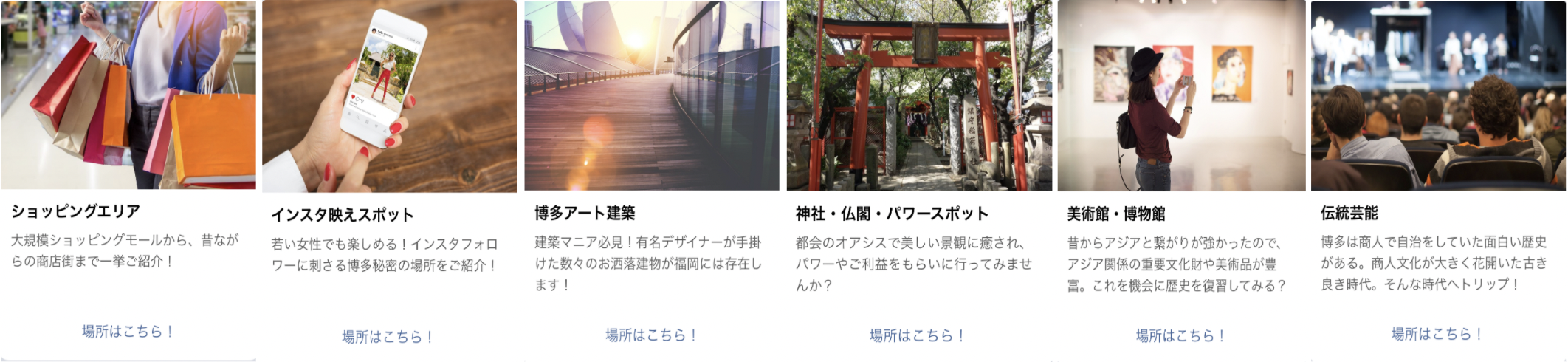 【メリット3】観光ガイドを使って、主要な観光スポットをテーマ別に紹介