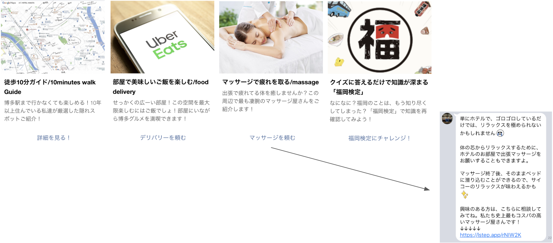 「また博多に行きたい」と思わせて、思わず宿泊の予約をしたくなるようなLステップを構築しました。