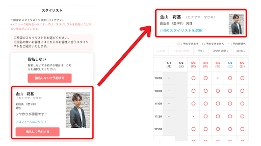 また、担当者を指名して予約をとりたい場合は、担当者ごとの予約フォームを設けて個別に予約できるように構築しました。