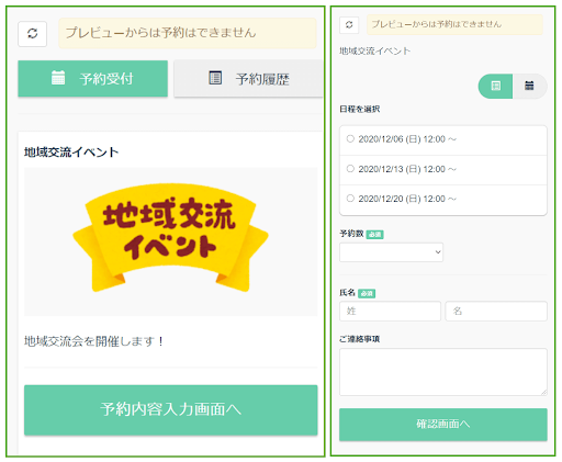 | イベント予約 | 特定日に開催するイベントに対して予約フォームから予約する |