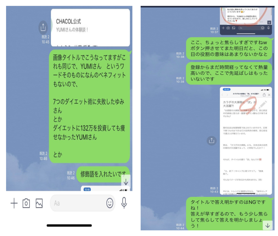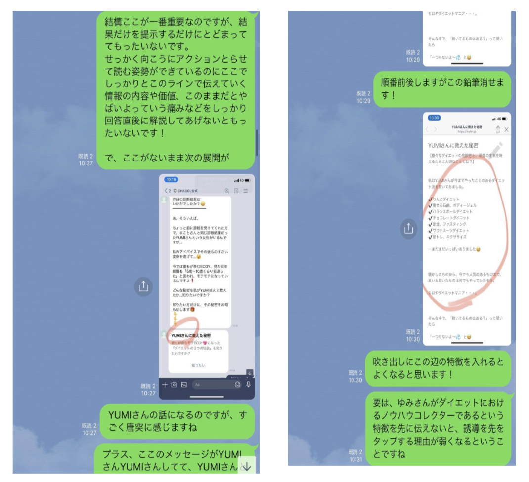 なので直接1対1で個別相談ができるのはもちろん、個別でシナリオやメッセージの添削などもズバズバさせていただきます。