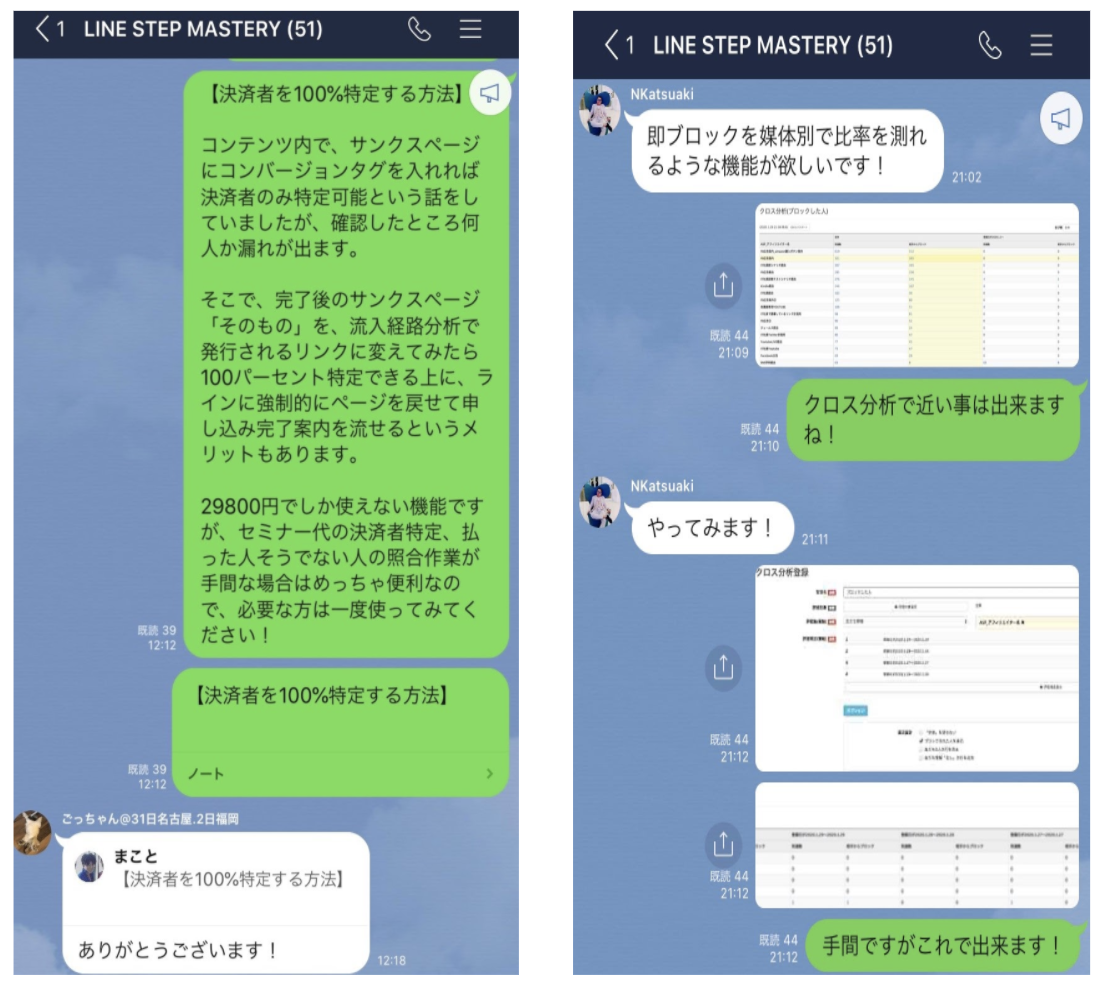 そして不定期ですが、完全クローズドで行っている「Lステップのグループ勉強会」へもご参加いただけます。