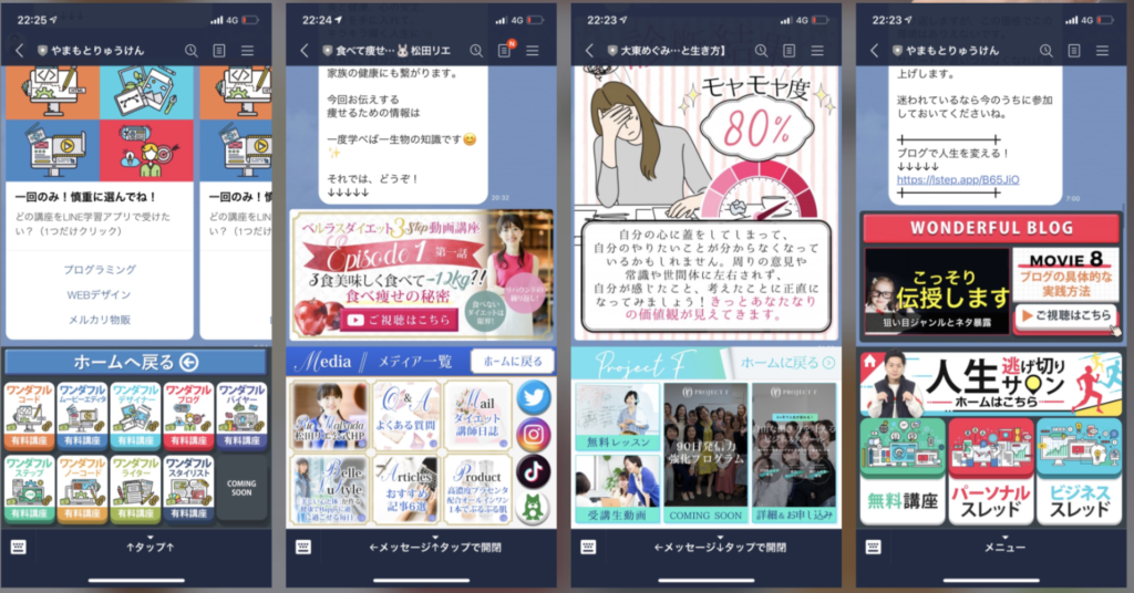 それだけでなく、Lステップを使ってリッチメニューを改善し、LINEのメニューから即座にサロンのスレッドへアクセスできるような設計にして、サロン内の回遊性を高めてます。