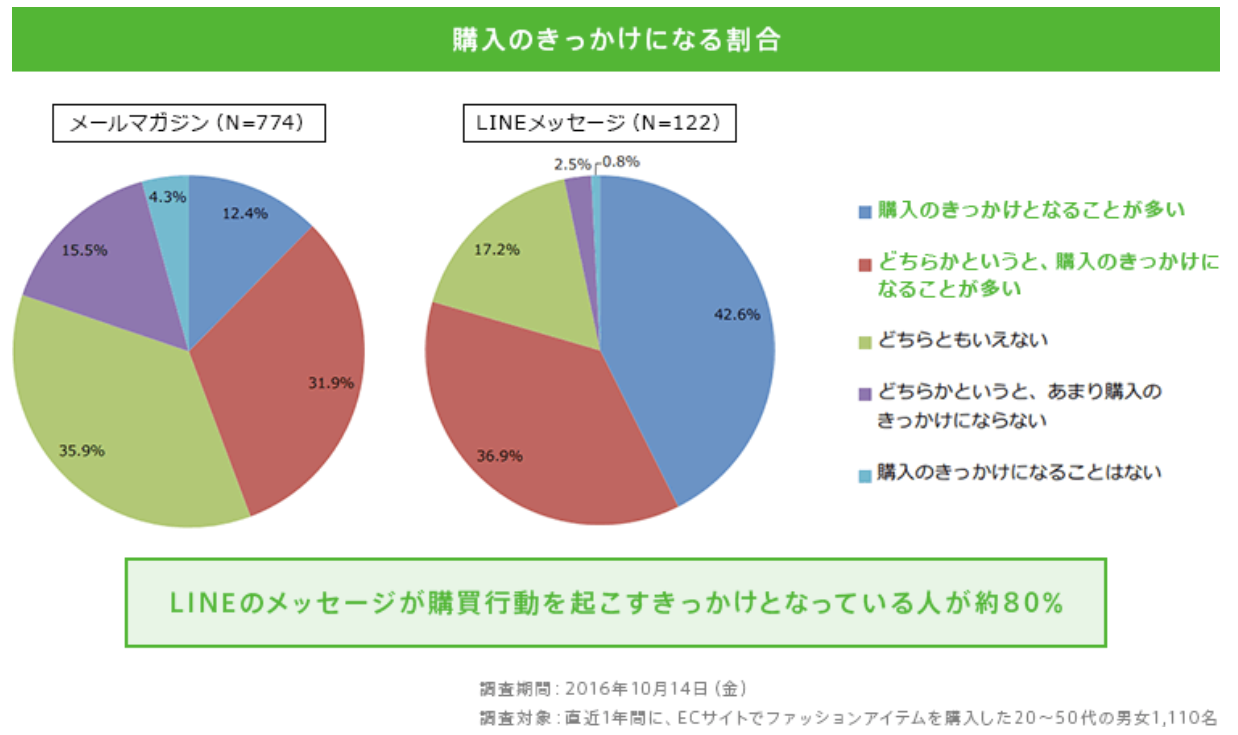 そして、商品購入のきっかけはメルマガと比較するとLINEは3.4倍も高いんです。