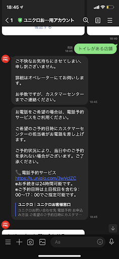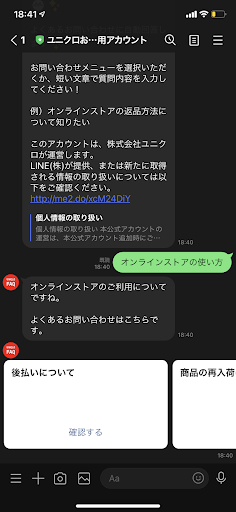 ユニクロはお問い合わせフォームとして活用していて、お問い合わせ専用アカウントで自動応答を活用しています。