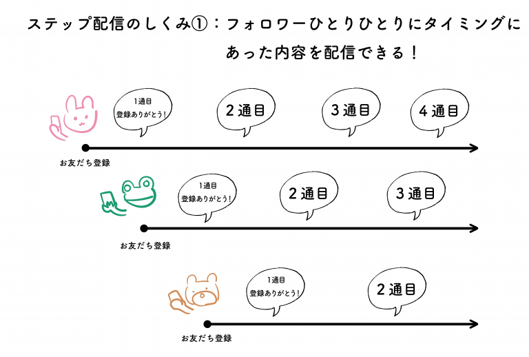 LステップではLINE公式アカウントよりもさらに細かな配信の設定が可能なので「あんなふうに配信したい」という願いを形にできます!
