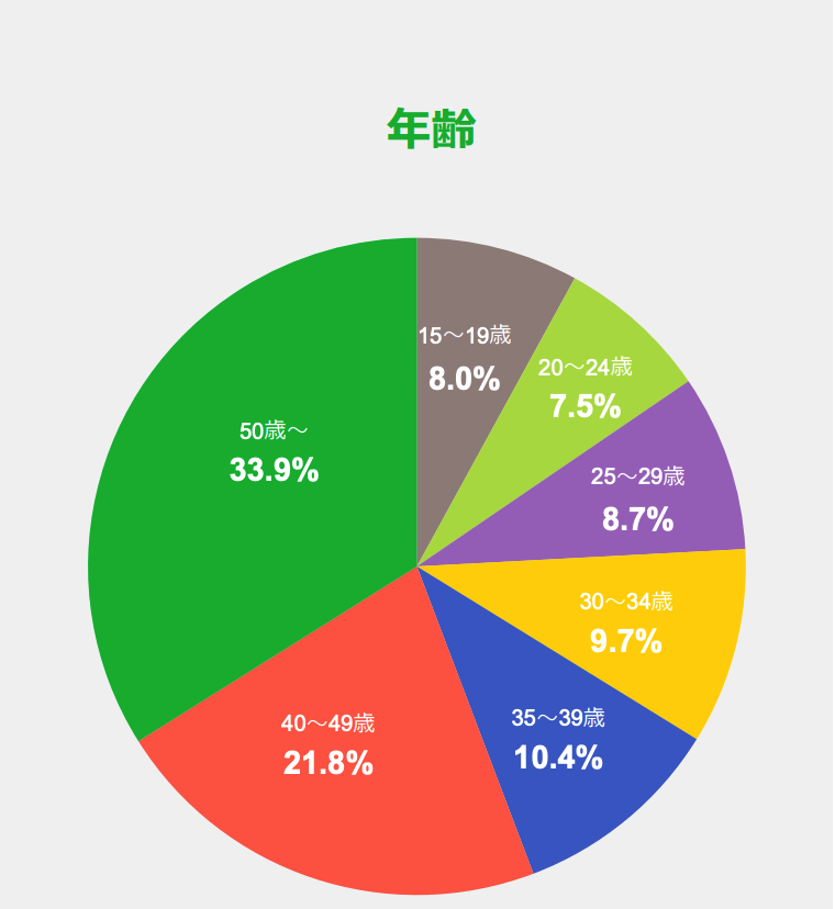 対するLINEはおおよそ日本の人口分布に沿った利用者の割合になっています。年代による偏りが少ないので、幅広い年齢層にアプローチできるでしょう!