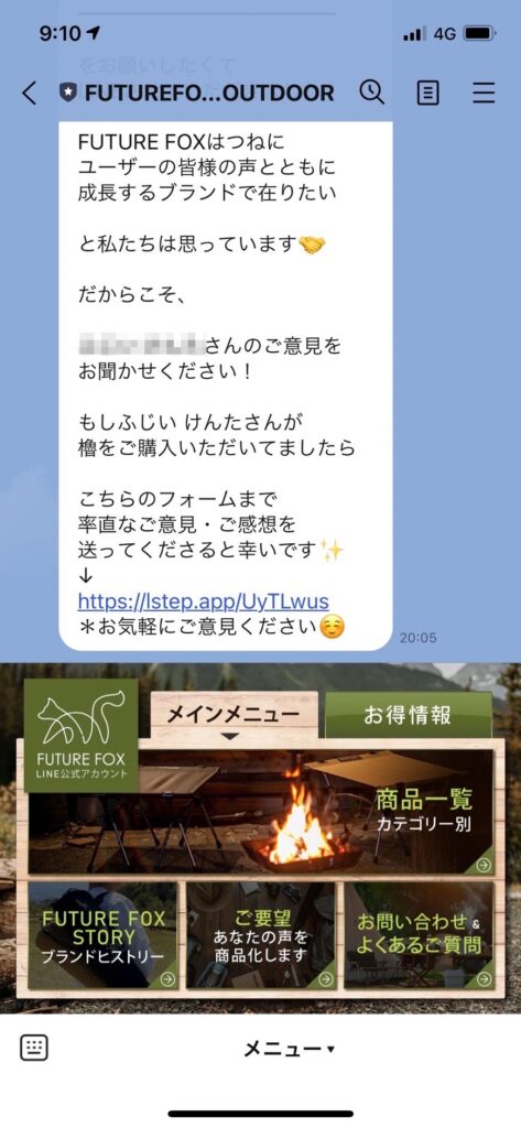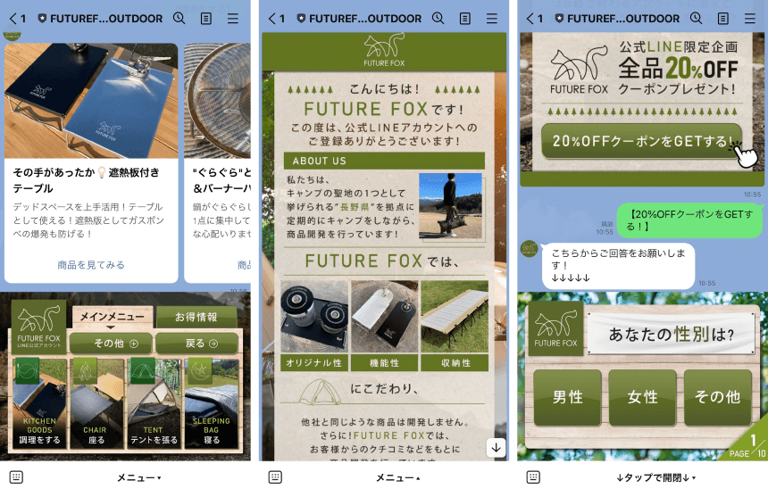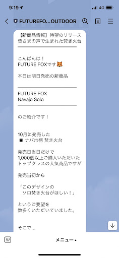 1つ目が、信州発のアウトドアブランドである「FUTURE FOX」さんのLINEです。