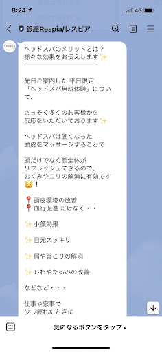 例えば、僕がよく通っている銀座のカリスマ美容室の「銀座レスピア」さんのLINEでは、まだ来店したことのないお客さんと既に来店したことがあるお客さんで配信を変えています。