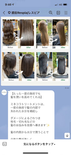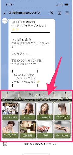 そこでレスピアでLINEを導入し、次回の来店予約までの期間中に、お客さんのタメになる情報や、自分達の商品やサービスを知ってもらうための情報を配信したりしています。