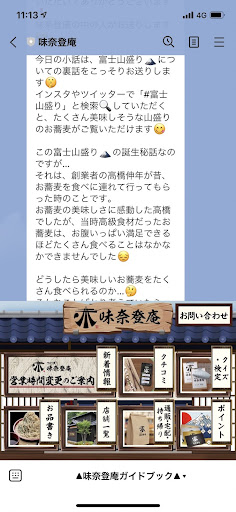 他にも、味奈登庵という創業50年の老舗のおそばやさんのLINE。