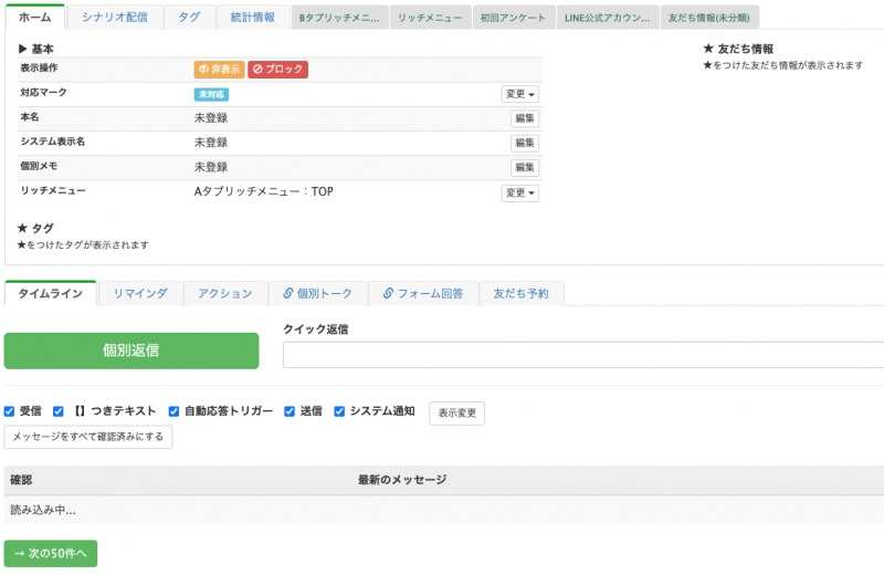 アンケートなどで誤タップした際、全てのタグや友だち情報をリセットしなければいけないので、個別で対応すると莫大な時間がかかってしまいます。