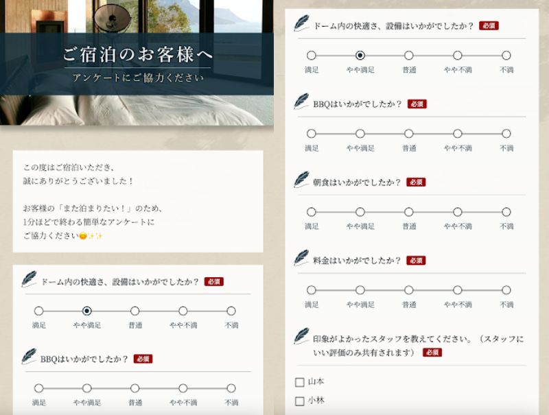 山梨県にあるグランピング施設「嶺乃華」のアカウントでは、アンケートを活用してリピート利用を促す施策を実施しました。