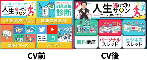 また、回答内容に合わせてリッチメニューの表示を切り替えることもできます。例えば、オンラインサロンを運営しているアカウントであれば、友だち登録した直後にアンケートを実施して属性分けを行い、すでにサロンに入会している人とそうでない人でリッチメニューの表示が切り替わるように構築しています。