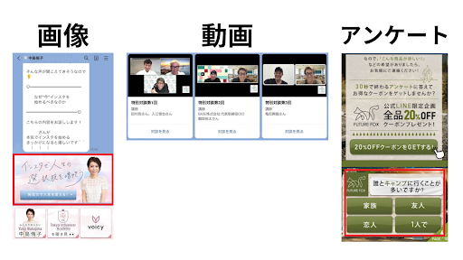 3つ目は、テキスト以外にもさまざまなタイプのメッセージを配信できることです。