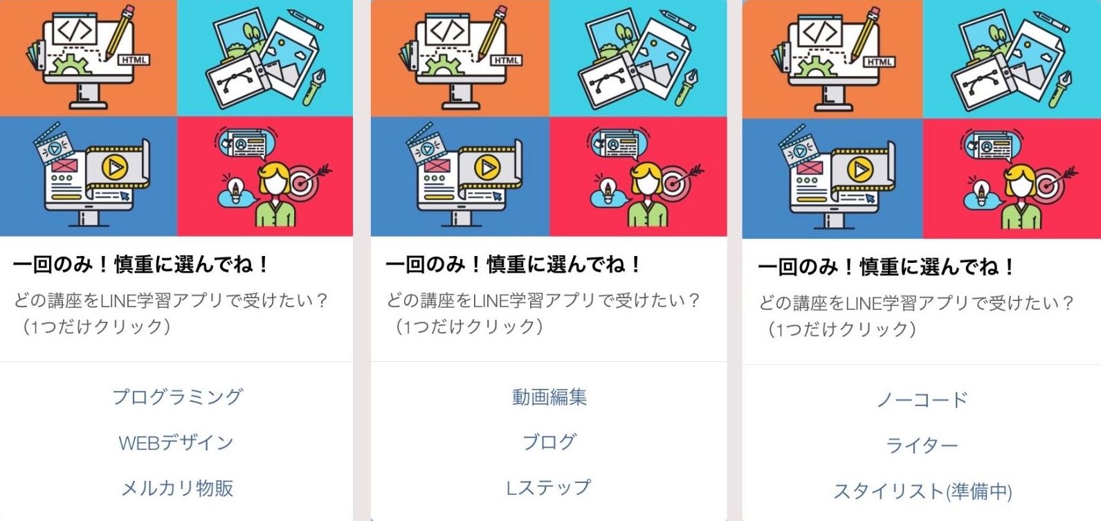 例えば僕が構築したやまもとりゅうけんさんのアカウントでは「顧客に」配信内容を決めてもらう機能を実装しました。