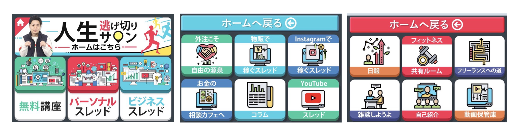 サロンメンバー用のリッチメニューでは、具体的な講座の紹介と会員専用のスレッドへの導線があり、見やすさや使いやすさを重視しています。