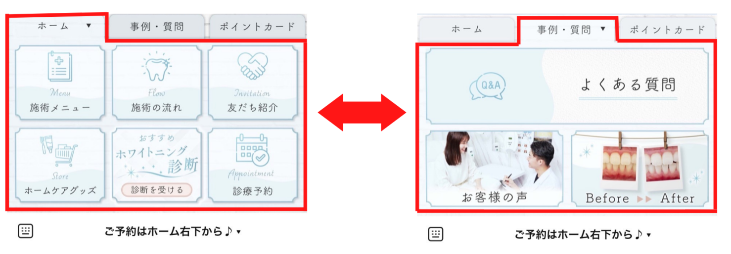 また、Lステップを用いてユーザー1人1人の属性に合わせてリッチメニューの表示を切り替えることも可能です。