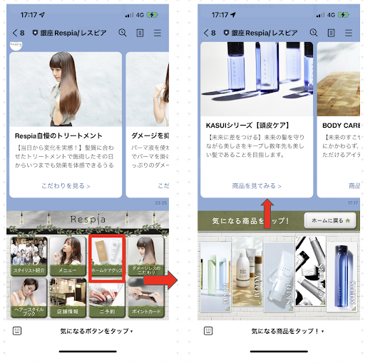 2.美容室やサロン|リッチメニューからネットショップへの導線を引いて商品購入率のアップを図った事例