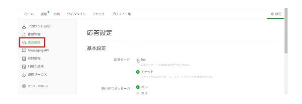 続いて、Lステップを使うために「応答設定」の変更をします。
