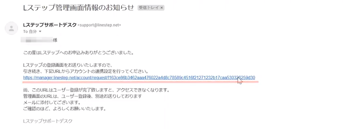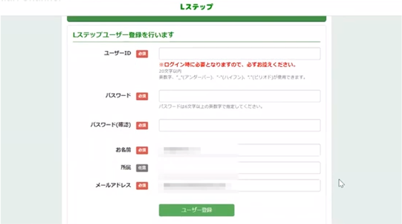 1.Lステップの利用者登録を完了