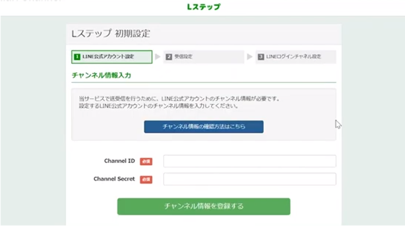 まず、Lステップの初期設定の流れは大まかに以下の2ステップです。
