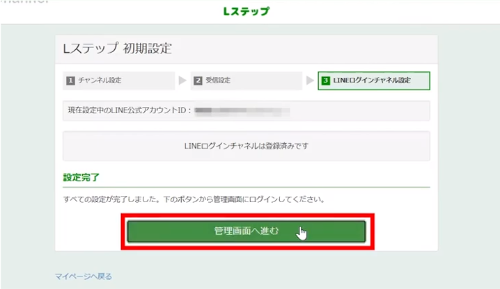 以上でLステップとLINE公式アカウントの紐付は完了です!