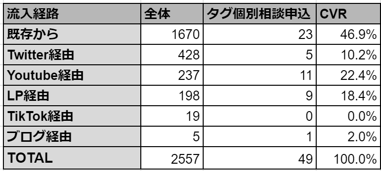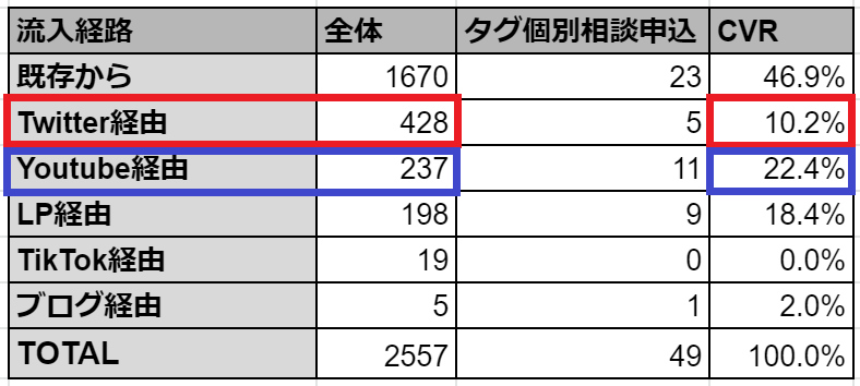 YouTubeから流入してきた読者の数はTwitterほど多くはないのですが、CVRが高かったのです。